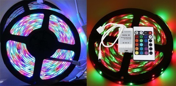 Можно задать любой цвет ленты из сочетания трех цветов (красный, голубой, зеленый) с помощью пульта!