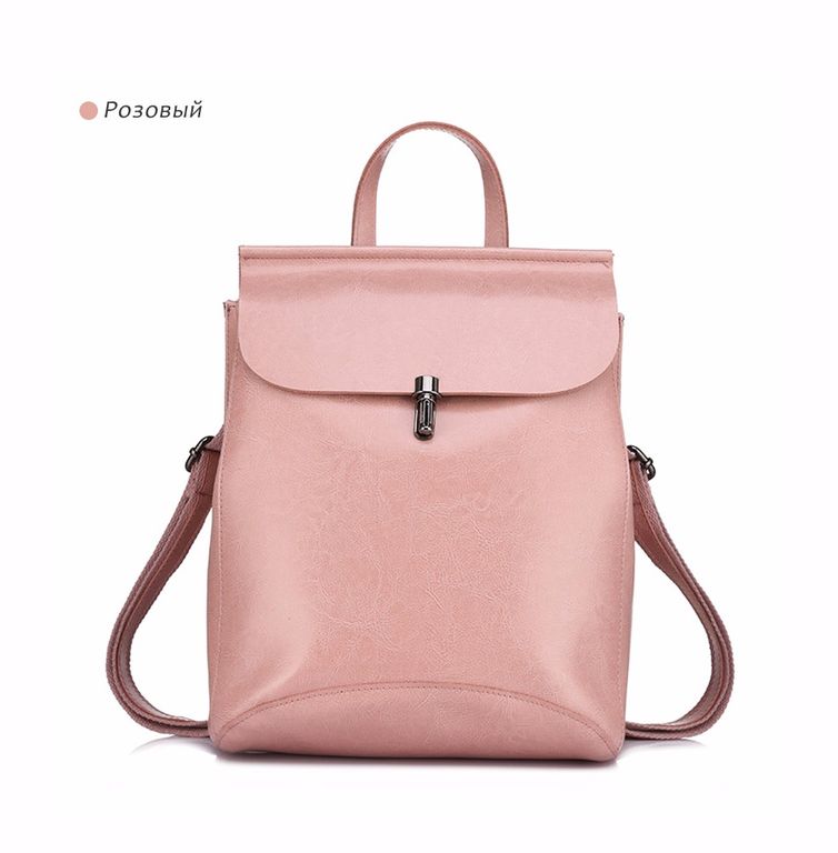 Женский рюкзак из натуральной кожи. Застегивается на молнию и крышку-клапан с защелкой "язычок". Имеет внутренние карманы, регулируемые плечевые ремни. Может трансформироваться в сумку на плечо. Снаружи на задней поверхности имеет горизонтальный карман на молнии. Размеры: длина - 26 см, ширина- 11 см, высота - 31 см. Производство - Китай.