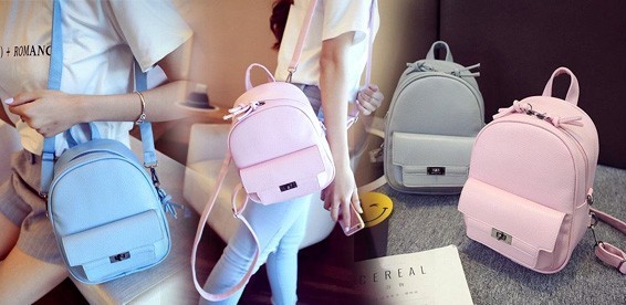 Женский небольшой рюкзак из искусственной кожи. Застегивается на двойную молнию. Имеет внутренние карманы, регулируемые плечевые ремни, спереди накладной карман с клапаном. Может трансформироваться в сумку на плечо. Размеры: длина - 18 см, ширина- 10 см, высота - 24 см. Производство - Китай.