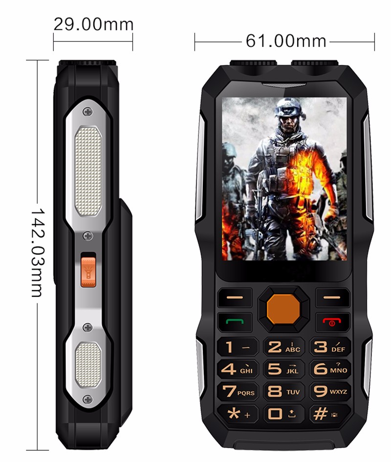 Встроенный FM,сильный фонарик, большие удобные кнопки , громкий динамик,аналоговое ТВ, GPRS, Калькулятор, Календарь, будильник, Камера, MP3/MP4.