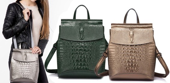 Женский рюкзак из натуральной кожи (сплит-кожа) с принтом под аллигатора. Застегивается на молнию и крышку-клапан на магните. Имеет внутренние карманы, регулируемые плечевые ремни. Может трансформироваться в сумку на плечо. Снаружи на задней поверхности имеет горизонтальный карман на молнии. Размеры: длина - 26 см, ширина- 13 см, высота - 31 см. Производство - Китай.