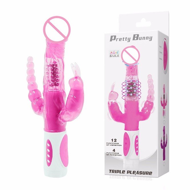 Мультискоростной вибратор "Pretty Bunny" стал еще лучше! Вращающийся фаллос реалистичной формы со специальными шариками для наиболее интенсивной стимуляции стенок влагалища. Восхитительный кролик с ушками для самой сладкой стимуляции клитора - интенсивность вибраций вы выбираете сами с помощью всего лишь одной кнопки на ручке вибратора! Анальный стимулятор специальной конической изогнутой формы для максимально комфортной и приятной стимуляции стенок ануса.