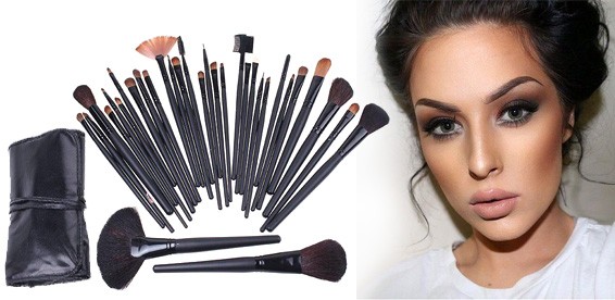 Профессиональный набор из 32 кистей для всех разновидностей макияжа в стильном черном кожаном чехле..