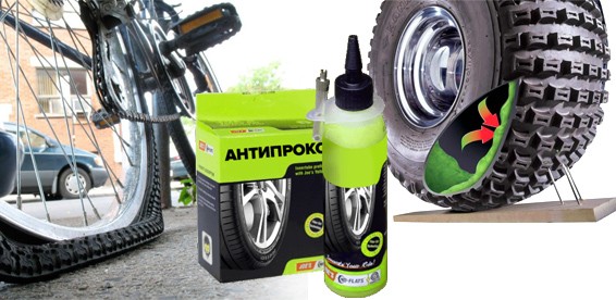 При вращении колеса центробежная сила равномерно распределяет состав внутри покрышки. При проколе состав выдавливается давлением воздуха в отверстие и, благодаря волокнистой структуре, начинает мгновенно формировать прочную, эластичную пробку. За счет углеволокна пробка приобретает форму гриба - шляпкой внутрь покрышки. Давление внутри колеса прижимает и "приклеивает" пробку к внутренней поверхности покрышки, ликвидируя утечку воздуха.