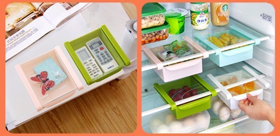 Полезный пластиковый аксессуар, который цепляется к плоской полке холодильника снизу и позволяет хранить всякие мелкие штуки. Да и просто на полку можно поставить в качестве лотка для яиц, например. Помимо этого удобно использовать в качестве дополнительного ящичка с плоскими стеклянными столами. Идея простая, но хорошо повышающая комфорт внутри холодильника и улучшающая порядок на столе.