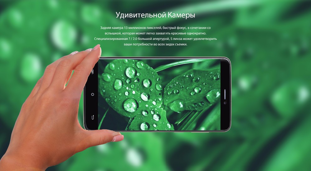Тыльная 13-мегапиксельная камера (интерполяция) дополнена автофокусом и светодиодной вспышкой, разрешение фронтального модуля — 5 Мп (интерполяция).