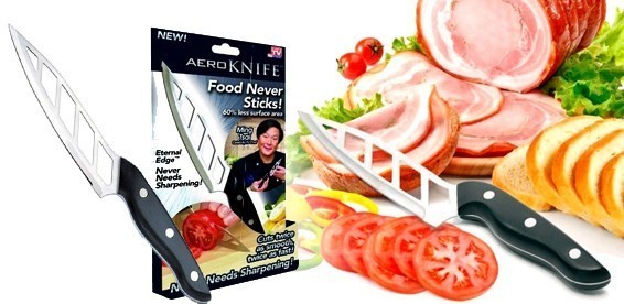 С легким и эргономичным Аэроножом Вы забудете о существовании проблемы затупившихся ножей, к которым прилипает нарезаемый продукт!