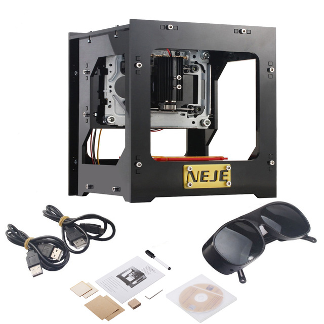 Комплектация: лазерный гравер – 1 шт., защитные очки – 1 пара, USB кабель – 1 шт., гаечный ключ – 1 шт., маркер для белой доски – 1 шт., деревянный блок – 1 шт., CD диск – 1 шт., деревянные чипы - 2 шт., бумага – 2 шт., руководство пользователя на английском языке – 1 шт.