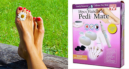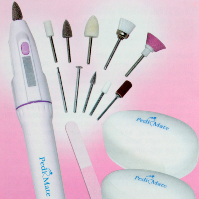 Набор для педикюра и маникюра включает в себя терку-пемзу для ступней Ped Egg (2 шт.) и прибор для ухода за ногтями Ped Shaper с 10-ю насадками. С помощью этого набора несложно поддерживать ножки ухоженными, а кожу ступней - идеально гладкой.