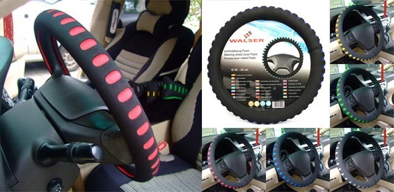 Размер L: 38-39 см. Подходит на все типы рулевого колеса. Чехол на рулевое колесо есть в пяти цветах: красном,синем,желтом,зеленом и сером. (в комментариях указывайте цвет )