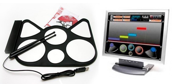 Устройство, работающее от компьютера при помощи USB-кабеля, имитирует игру 6 типов барабанов, позволяет записывать и впоследствии воспроизводить мелодию, имеет большой спектр опций (выбор ритма и звучания, активирование эффекта басовой бочки и т.д.). Для людей, только осваивающих принцип игры на подобном музыкальном приспособлении, предусмотрено наличие обучающей программы.