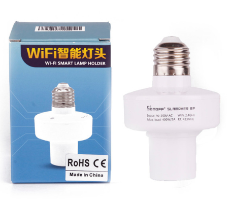 Sonoff Slampher является Wi-Fi беспроводным управляемым электрическим патроном для ламп с резьбовым цоколем Е27. Slampher передает данные в облачную платформу через Wi-Fi маршрутизатор, что позволяет пользователям удаленно контролировать все лампочки, через приложение eWeLink на их смартфоне. Сервер Slampher - это глобальный сервер Amazon AWS.