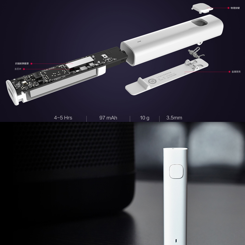 Данное решение работает в радиусе 10 метров, технология передачи данных — Bluetooth 4.2. Поддерживается одновременное подключение двух Bluetooth-устройств. Вес ресивера 10 грамм. На передатчике имеется удобное крепление (прищепка), которое позволяет крепить его к одежде и прочим выступающим местам.