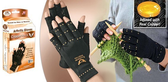Артрит почти полностью лишает рук людей, страдающих этим возрастным заболеванием. Такие простые действия, как повернуть ручку двери, держать в руке нож или любой другой инструмент из домашнего хозяйства, не говоря уже об использовании его, становятся болезненными или просто невыполнимыми из-за потери подвижности в суставах. Компрессионный эффект перчаток Copper Hands в сочетании с лечебным влиянием маленьких медных дисков на них, позволяет во многом облегчить симптомы артрита и вернуть больных к нормальной жизни.