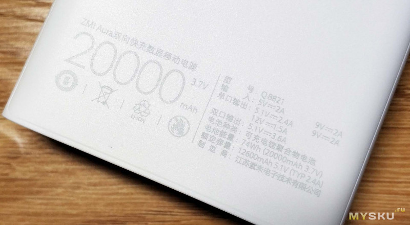 — Запасаемая энергия: 12600mAh (при 5.1В/2.4A)