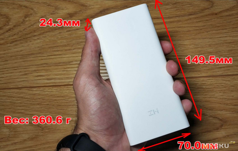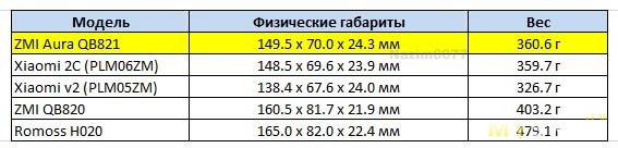 По своим габаритам ZMI QB821 почти такой же, как Xiaomi PLM06ZM. В длину имеет — 149.5мм, в ширину — 70.0мм и в толщину — 24.3мм. Вес составляет — 360.6 г.
