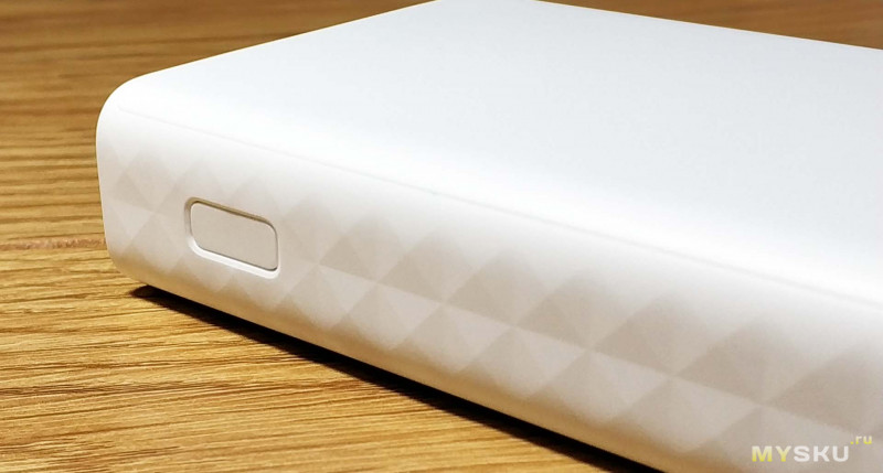 Сама новинка визуально очень сильно похожа на PLM06ZM — последнюю модель емкостью 20000мАч, выпущенную под логотипом Xiaomi. Но если приглядеться есть и существенные изменения. Корпус все так же выполнен из матового белого пластика, но теперь он не имеет на своей поверхности мелких точек, пупырышков. Зато вместо них, на боковых торцах появились узоры в виде крупных ромбиков, или квадратов. На практике это должно положительно сказаться, на предотвращении скольжения в руках.