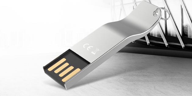 Металлическая флешка изогнутой формы, которая не боится воды.