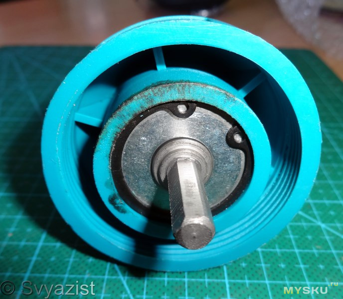 Ось, зажимаемая в патрон шуруповёрта, вращается на подшипнике:
