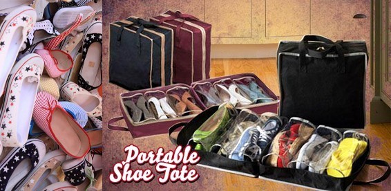 Эксклюзивный органайзер обуви Shoe Tote сочетает в себе удобство, практичность и стиль. В сложенном виде от занимает совсем мало места. А в рабочем состояние помещает 6 пар обуви. Такую сумку можно брать с собой в дорогу, путешествуя поездом, автомобилей или самолетом.