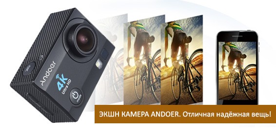 Видеорегистратор-экшн камера Andoer Q3H-R 4K+аквабокс. Купон за 590 р. + доплата 3290 р. вместо 8900 р., скидка 56% |