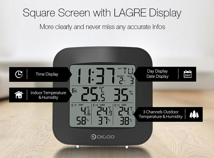Метеостанция Digoo DG-TH3330 с 3 внешними датчиками. Купон за 390 р. + доплата 1650 р. вместо 4500 р., скидка 54%. |