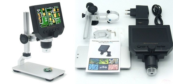 Спереди у микроскопа находится 4.3 дюймовый цветной экран, на который выводится изображение изучаемого предмета и меню управления микроскопом. Микроскоп может работать и управляться автономно — от встроенного аккумулятора и с использованием карты памяти микроSD. Второй вариант управления и работы — через компьютер.