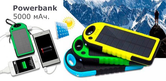 Водонепроницаемая солнечная зарядка Powerbank 5000 мАч. Купон за240 р. + доплата 950 р. вместо 2500 р., скидка 52%. |