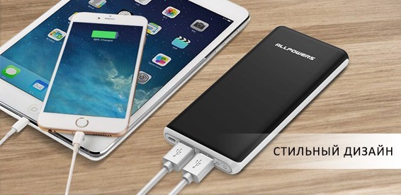 Аккумулятор ALLPOWERS на 10000mAh (2хUSB, 2.4А). Купон за 390 р. + доплата 1590 р. вместо 3990 р., скидка 50% |