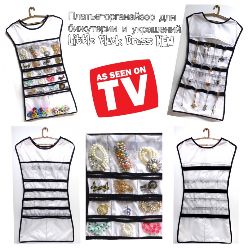 Платье-органайзер наведет порядок на туалетном столике и в многочисленных вазочках и шкатулках. Благодаря вешалке легко разместится в любом гардеробе. Все на виду и строго на своем месте!