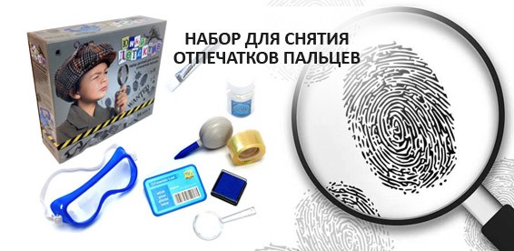 Детский набор для снятия отпечатков пальцев "Юный детектив". Купон 190 р. + доплата 690 р. вместо 1900 р. (скидка 54%)