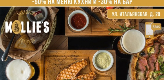 Скройтесь от всех проблем и суеты в стенах уютного паба Molly Shelter! Отличные закуски, свежее пенное, уютная атмосфера, чудесная музыка и огромные скидки на все меню ждут вас.