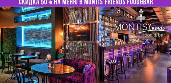 В стенах уютного ресторана MONTIS’Friends Food&Bar любой досуг станет еще более комфортным, вкусным и запоминающимся! Ведь вас встретит гостеприимная атмосфера релакса и масса потрясающих лакомств с отличными скидками!