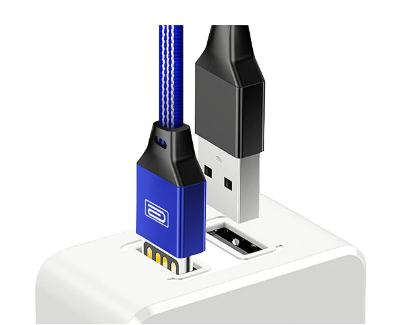 Доступно 3 разъёма - microUSB, Lightning и Type C USB-штекер двусторонний - можно втыкать в порт вслепую.