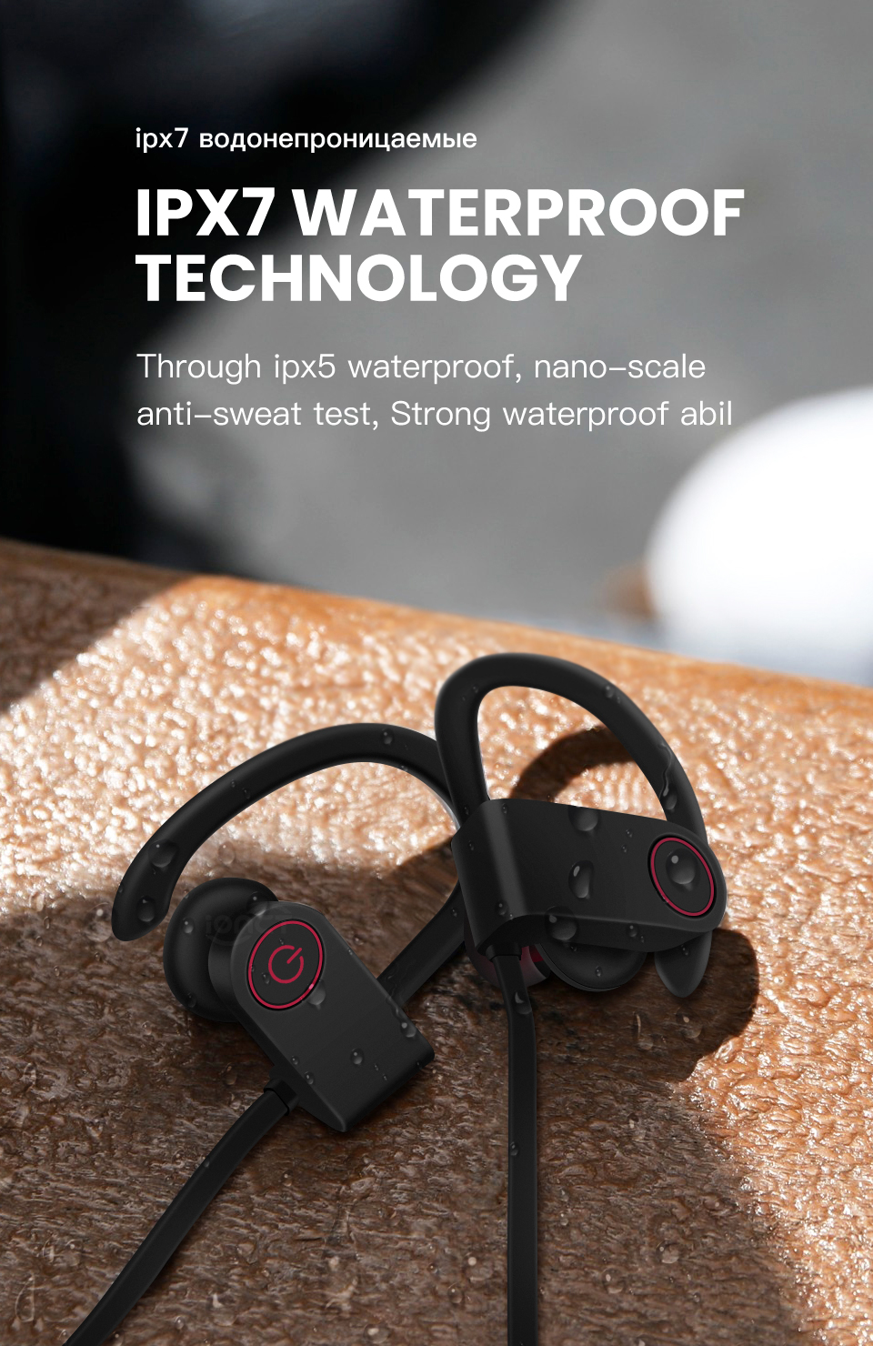 -IPX7 водонепроницаемый уровень предотвращает Bluetooth наушники от входа обычные брызг воды и дождя.