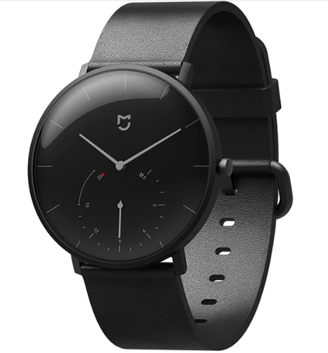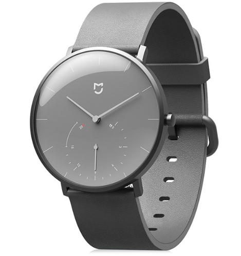 На первый взгляд, ничто в облике этих часов с классическим стрелочным циферблатом не выдаёт смарт-составляющую. Но если копнуть глубже и синхронизировать хронограф со смартфоном по сети Bluetooth, модель сможет дублировать уведомления о звонках и сообщениях, а также вести подсчёт количества пройденных за день шагов. Их фактическое количество отображается на дополнительном циферблате, являющемся неотъемлемой частью основного. Xiaomi Mijia Quartz Watch построены на «раме» из нержавеющей стали, а лицевая сторона часов прикрыта минеральным стеклом. Согласно паспортным данным, корпус носимого гаджета выдерживает давление до 3 атм, что соответствует возможности погружения на глубину 30 м. Однако плавать в часах производитель всё же не рекомендует. Питание смарт-ассистента обеспечивает батарейка CR2430, менять которую понадобится примерно раз в полгода. На полках магазинов часы представлены в 40-миллиметровом исполнении и трёх вариантах расцветки: в белом корпусе с синим ремешком, сером корпусе в сочетании с серым кожаным браслетом, а также чёрном корпусе в комбинации с аналогичным по цвету ремешком.