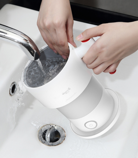 Компактный и стильный чайник, который может сопровождать пользователя в любом путешествии. Чайник выполнен в белом цвете. Его особенностью является складной корпус, благодаря которому возможна удобная транспортировка.