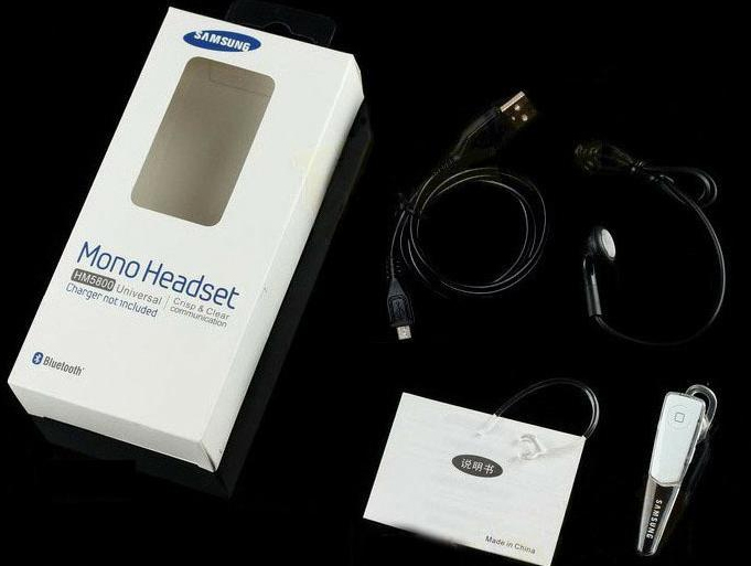 В комплекте: гарнитура с подсветкой Samsung, инструкция, второй наушник (по необходимости подключается отдельно), USB-кабель для зарядки.