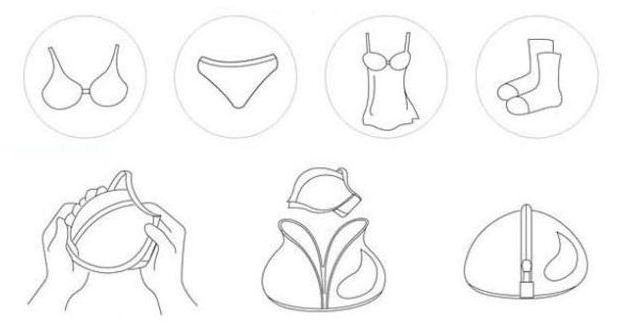 Металлические части бюстгальтера остаются в сетке и не могут повредить другие изделия, которые стираются одновременно. Двойная сетка в форме купола и пластиковые ребра надежно сохраняют форму бюстгальтера, обеспечивают хорошее поступление воды. Эластичная лента защищает молнию во время стирки.