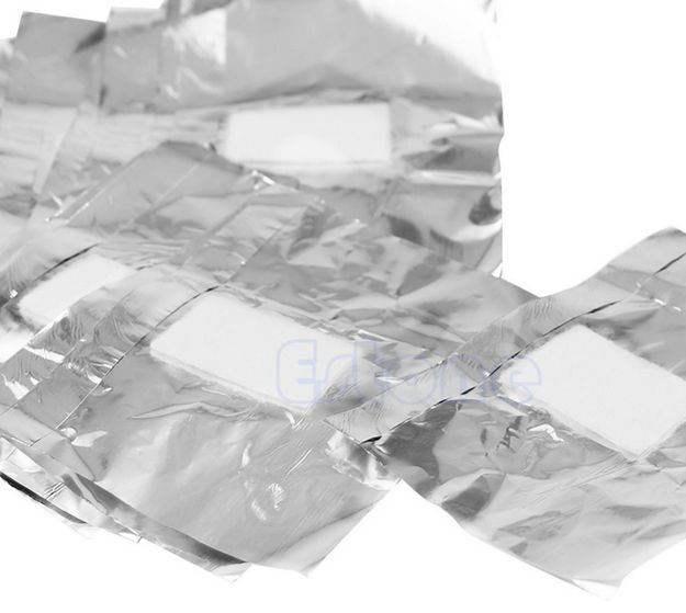 В упаковке 100 кусочков фольги размером 8.5 см x 6 см.
