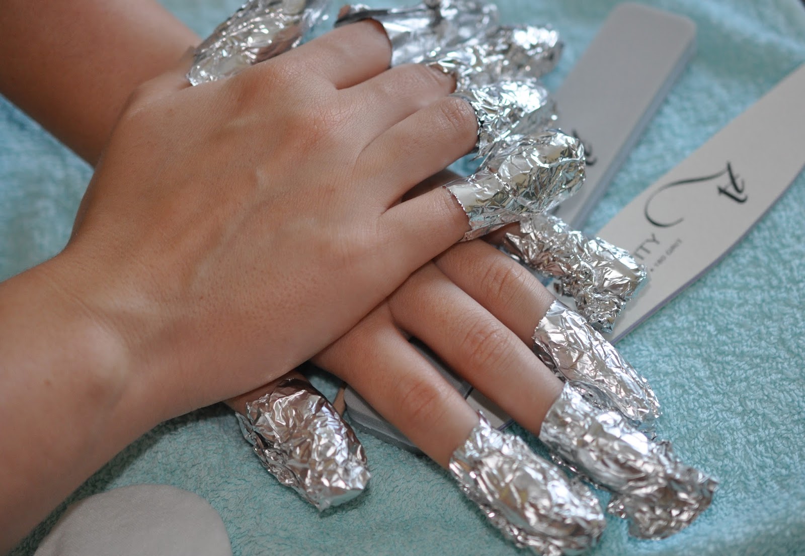 Подготовка ногтей. Большинство гель лаков перед снятием необходимо немного зашлифовать. Для это пилочкой совсем немного убираем глянец с покрытия (главное не переусердствуй, когда запиливаете не сильно надавливайте на пилочку). Но если у вас покрытие Shellac то этот этап можно пропустить, так как шеллак не требуется запиливать.