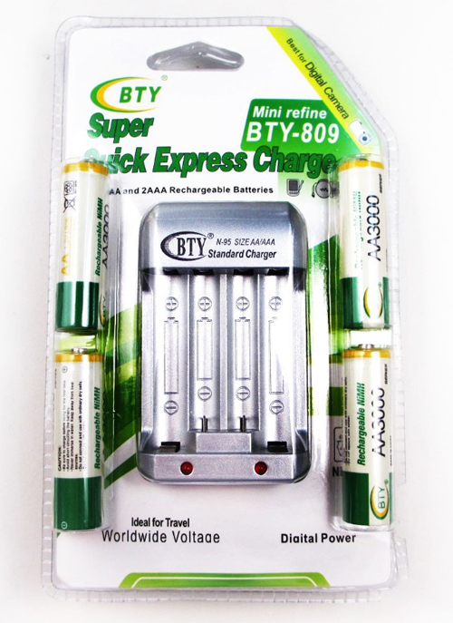 В комплекте: зарядное устройство + 4 аккумуляторных батарейки.