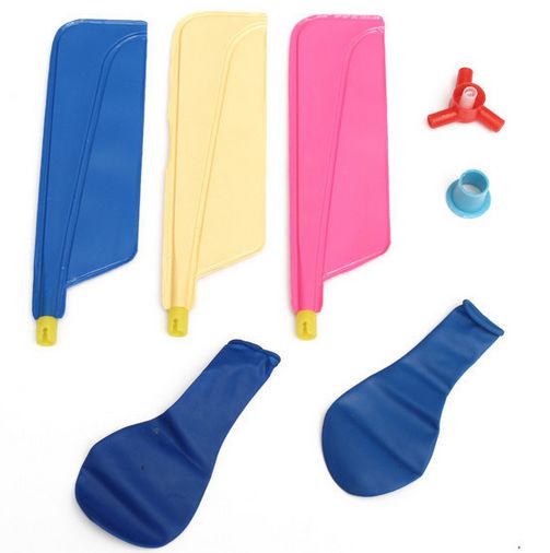 Забавная игрушка для игр на свежем воздухе. Достаточно надуть шарик и подсоединить лопасти, ваш шарик улетит, вращая лопастями как вертолет .