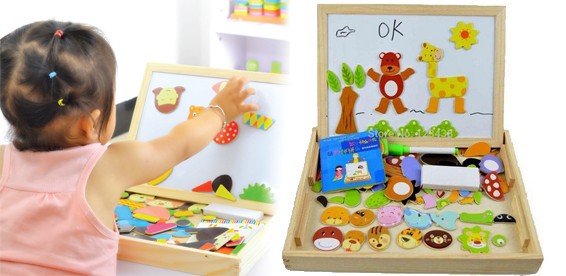 Многофункциональная двусторонняя деревянная доска с множеством интерактивных функций: сторона для рисования мелками; сторона для рисования фломастерами, множество фигурок для аппликаций, . Доска компактно складывается и ее очень удобно хранить. Одна сторона для рисования фломастерами и игр с магнитами. Также малыш может рисовать на бумаге, которую легко прикрепить к поверхности доски с помощью магнитов.