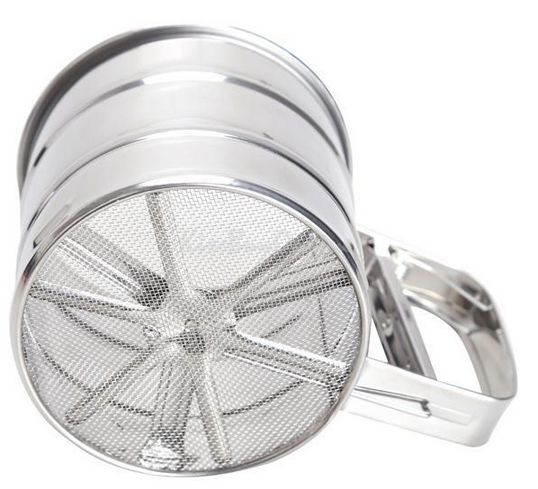 Кружка-сито - это удобный и функциональный инструмент на кухне, предназначенный для просеивания муки, сахарной пудры и какао. Изготовленная из маталла, кружка-сито очень проста в использовании. Изделие выполнено в виде большой глубокой кружки, состоящей из корпуса с ситовым дном и двухсекционной ручки. Достаточно насыпать в кружку муку и несколько раз нажать на ручку. Узкий диаметр кружки-сита не позволяет муке просыпаться мимо, поэтому на кухне всегда будет чисто.
