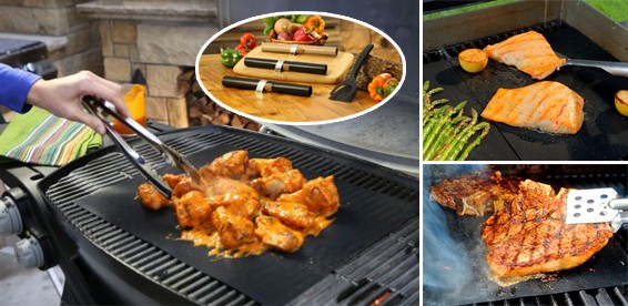 Набор антипригарных ковриков – это два идеальных помощника на кухне для заботливой хозяйки. С ними Вы сможете порадовать своих близких пышными и ароматными изделиями, при этом, абсолютно не добавляя масла при запекании. Также на втором коврике вы можете готовить на гриле, и гриль не придется потом отмывать от мясного и овошного сока. Пища, приготовленная на наших ковриках не пригорает и не прилипает к ним, поэтому Вы можете не беспокоиться о том, что Вам придется подолгу оттирать коврик и тратить своё время на чистку пригоревших участков.