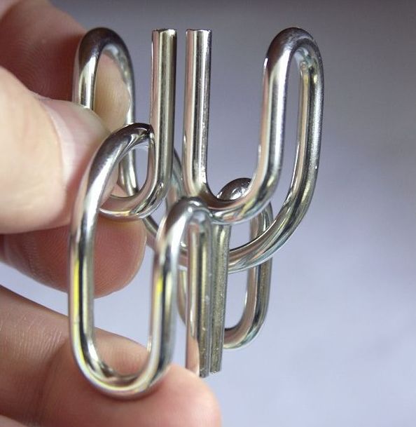 Проволочные головоломки - одни из самых простых и самых сложных одновременно. Простые, потому что как только вы догадаетесь об алгоритме решения, вы скорее всего подумаете - "Черт, да это же элементарно!". А сложные потому, что, пока вы найдете этот самый алгоритм, вы потратите немало времени и, возможно, нервов. Разгадав один раз проволочную головоломку, вы вряд ли забудете, как это сделали.