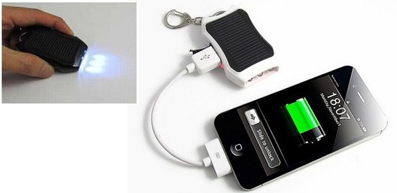 Компактный зарядник на солнечных батареях в виде брелока очень удобен: его можно брать с собой куда угодно,даже носить на связке ключей! В комплекте идет 4 типа переходников, что позволяет заряжать мобильники разных марок, в т.ч. iPhone, плееры, GPS-навигаторы, камеры и т.д. Вы всегда будете на связи, сможете послушать музыку, не пропустите важный звонок из-за севшего аккумулятора. Кроме того, в батарее есть встроенный фонарик на 3 светодиодах, который выручит Вас в неосвещенном подъезде, на темной улице и т.п.