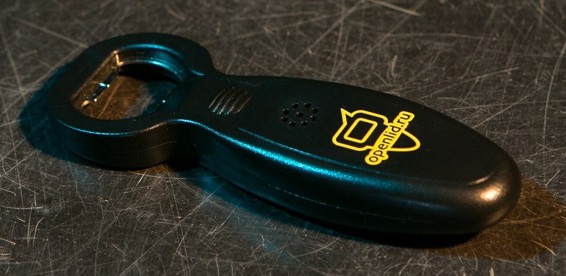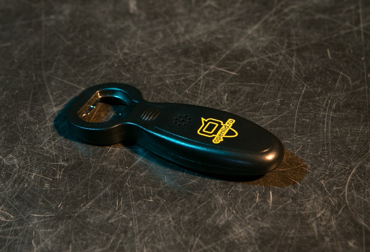 Открывалка работает без каких-либо кнопок. При соприкосновении с металлической крышкой пивной бутылки она воспроизводит одну из трех записанных фраз: