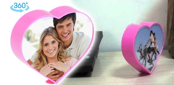 Вращающаяся фоторамка в виде сердца станет отличным подарком для любителя фотосессий, в нее можно поместить 2 фотографии, а благодаря своей креативности и необычности она привлечет к себе и к Вашим фотографиям столько внимания, сколь не смогут и 10 обычных фоторамок.